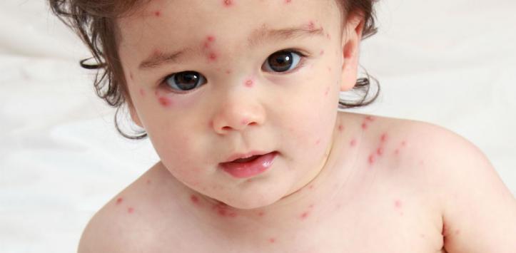 มีจุดแดง จ้ำเขียว ผื่นแดง ตุ่มใส หรือตุ่มหนอง ขึ้นพร้อมกับมีอาการตัวร้อนร่างกายมากกว่า 37.2 องศาเซลเซียส